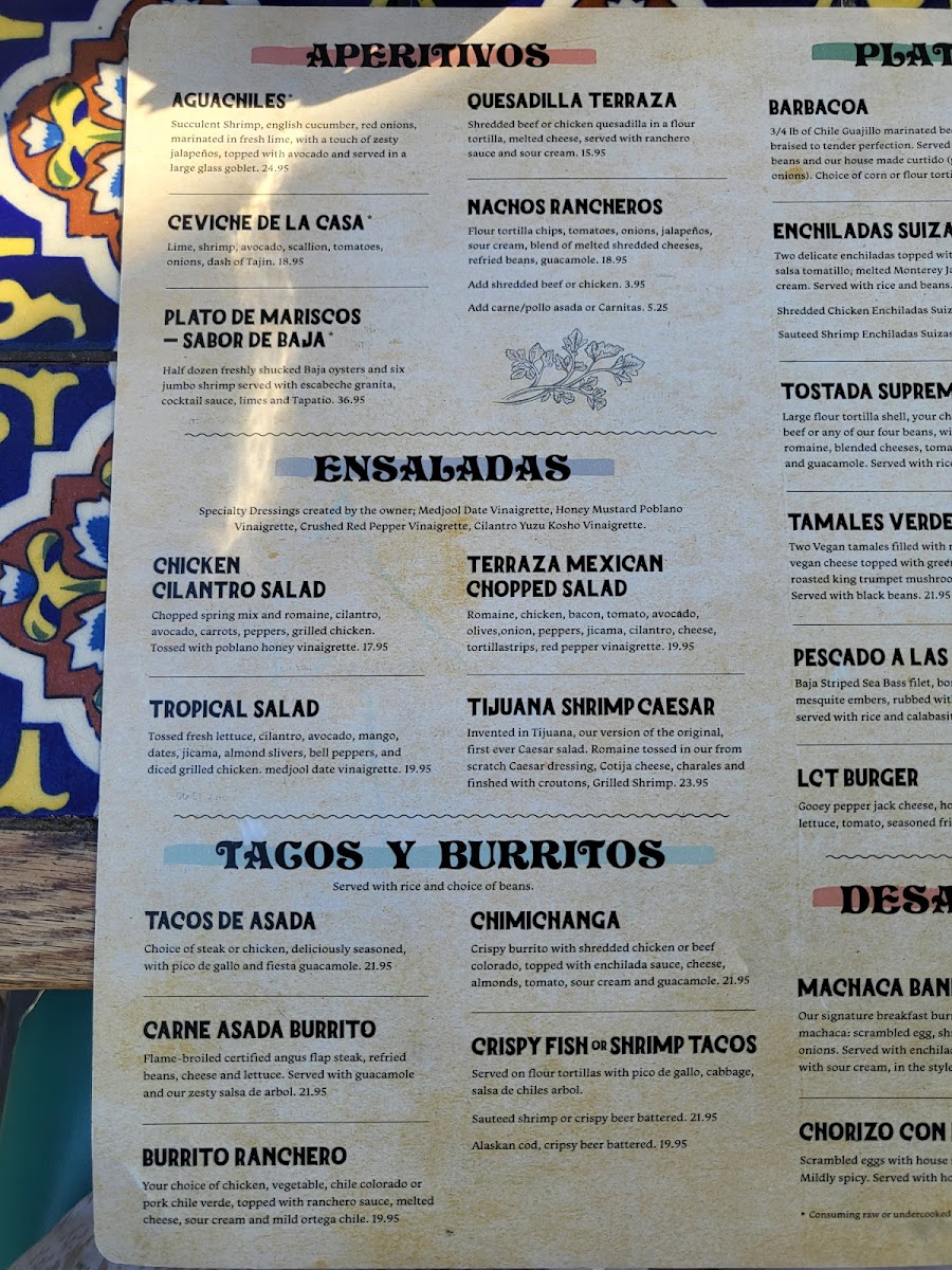 The menu at Las Casuelas Original offers a welcoming blend of classic Mexican dishes crafted with a straightforward, satisfying approach. Here, you can find hearty options like Carne Asada Burrito Ranchero, New Mexico Enchiladas, and 2 Chile Rellenos, alongside lighter choices such as Ceviche Fresco and Shrimp Tacos. The food is designed for sharing casual meals, whether you're stopping in for a relaxed lunch or enjoying a comfortable dinner in Palm Springs’ iconic setting.
